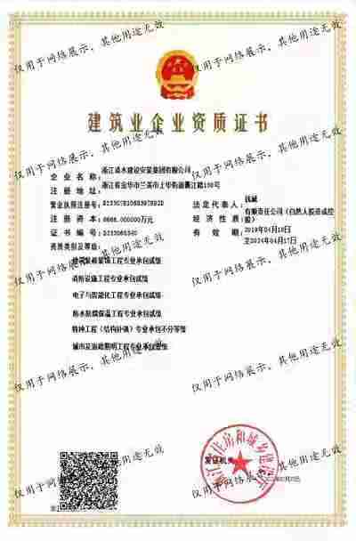 浙江清水建設(shè)安裝集團(tuán)有限公司成立于2013年,注冊(cè)資金6688萬元。集團(tuán)具有消防設(shè)施工程專業(yè)承包壹級(jí)、城市與道路照明專業(yè)承包壹級(jí)、電子與智能化專業(yè)承包壹級(jí)、建筑裝飾裝修專業(yè)承包貳級(jí)、防水防腐保溫專業(yè)承包貳級(jí)、市政工程施工總承包貳級(jí)、機(jī)電工程施工總承包貳級(jí)、建筑工程施工總承包貳級(jí)、電力工程施工總承包貳級(jí)、機(jī)電工程專業(yè)承包貳級(jí)、環(huán)保工程專業(yè)承包貳級(jí)、古建筑工程專業(yè)承包貳級(jí)、特種工程結(jié)構(gòu)補(bǔ)強(qiáng)專業(yè)承包、建筑施工勞務(wù)作業(yè)專業(yè)承包(憑建筑業(yè)企業(yè)資質(zhì)證書經(jīng)營(yíng)